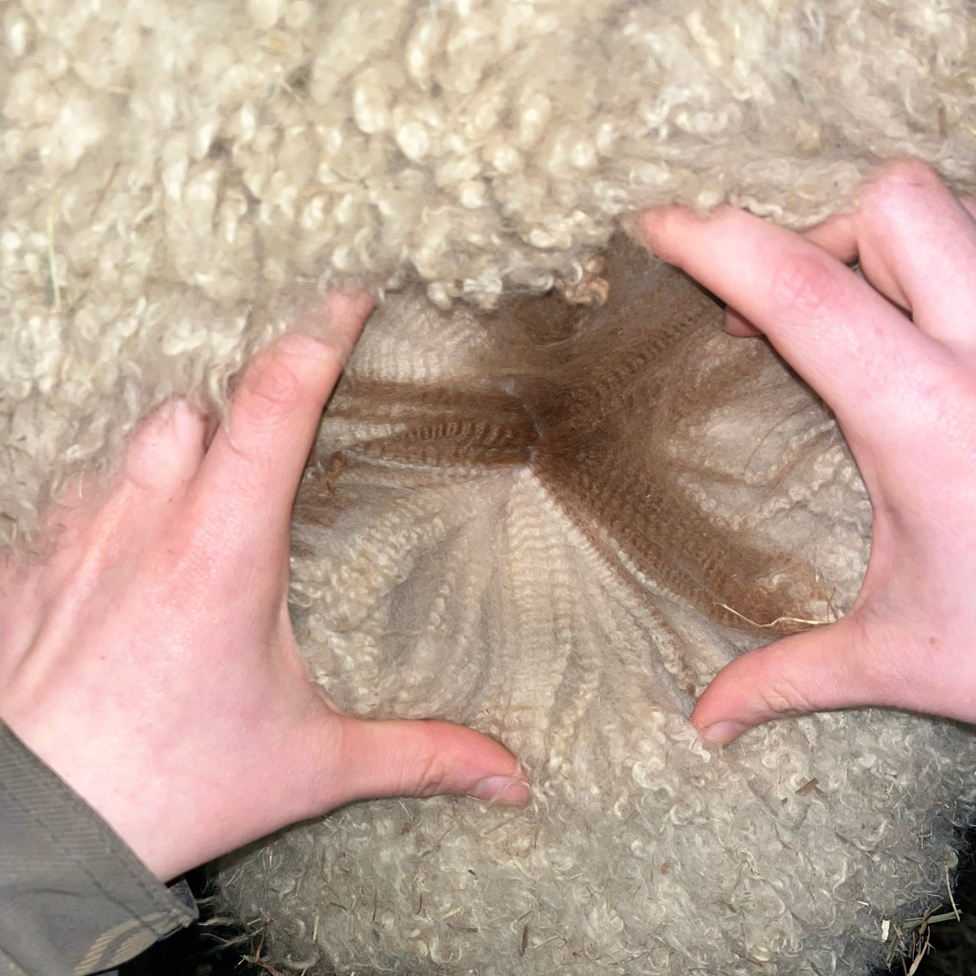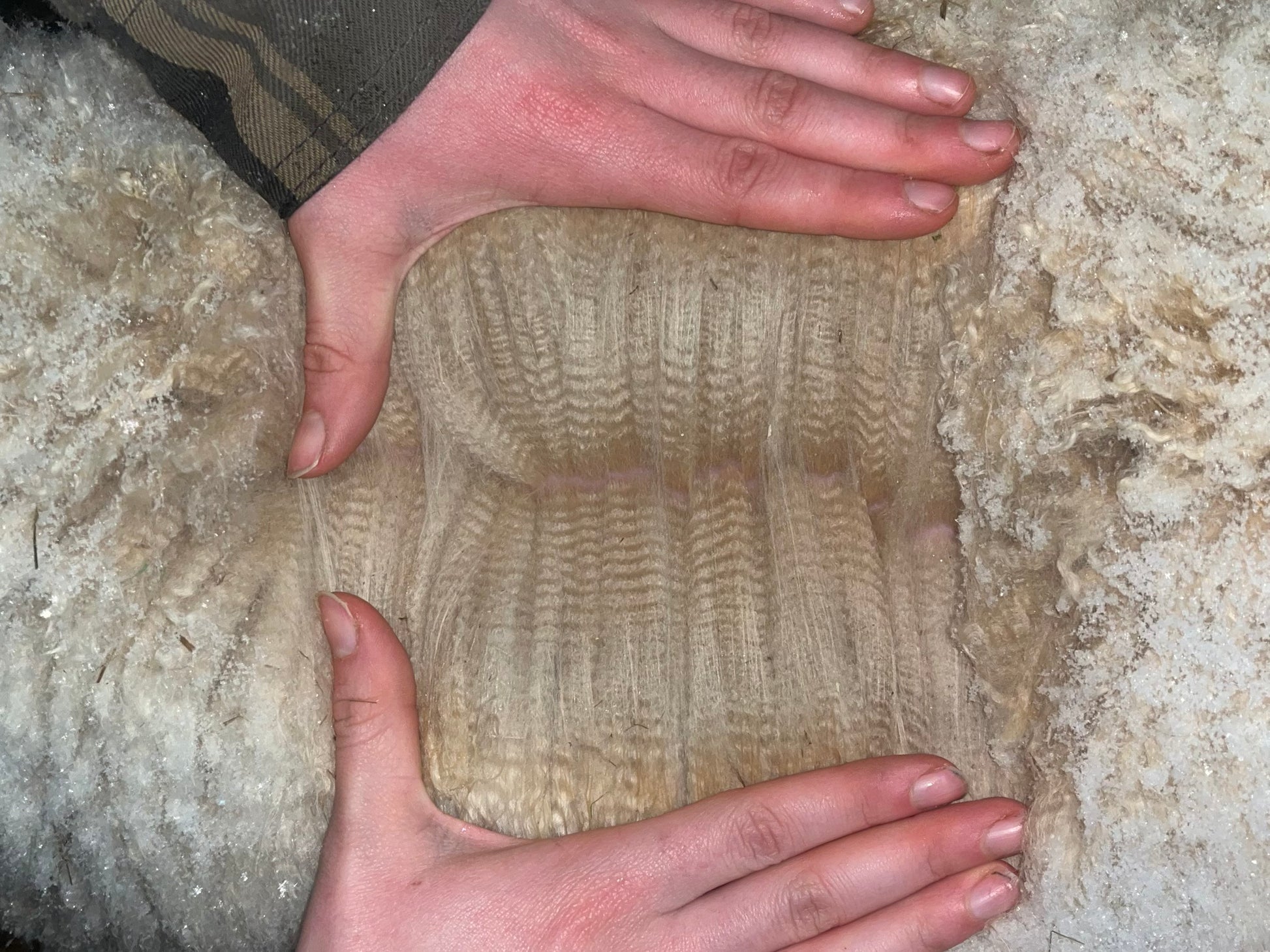 She has a pale fawn color along the dorsal line, while her body is rather beige with two fawn spots. Ansoleillée's fiber is very fine with excellent density. The organization of her fiber is reminiscent of that of her mother, with a crimp that I appreciate despite its unique and particular character.