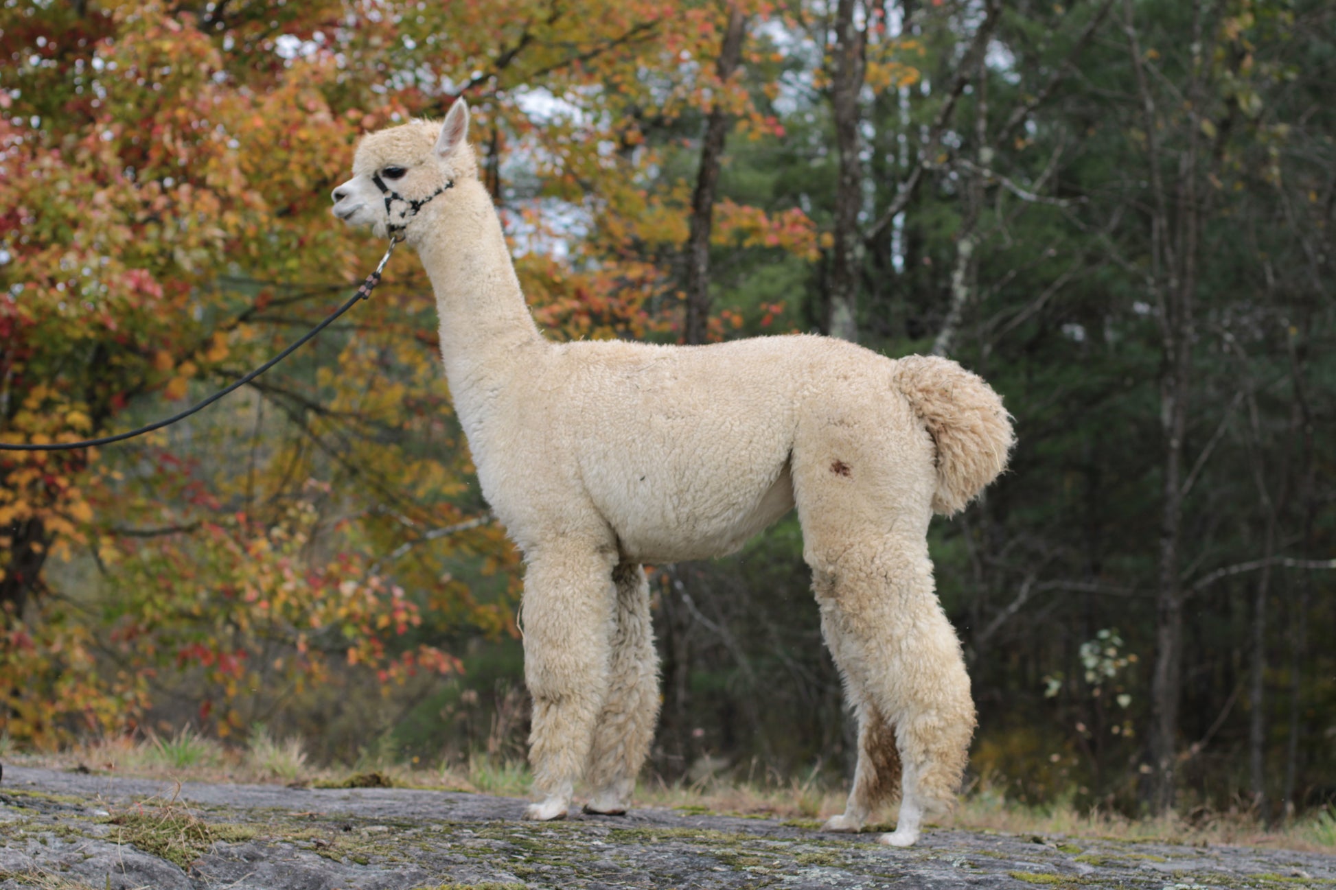 Ansoleillée has an interesting genetic heritage. Her sire, Alpacajoy Excelsior, is a two-time Champion and is descended from CCNF Elixir (3x Herdsire of the Year), Snowmass Elite Legend (5x Herdsire of the Year), as well as Champions at The Futurity; Snowmass Legacy Gold and Snowmass Messiah. On the maternal side, with DNA's Miss Auriflamme as mother, she is the granddaughter of Averegan's Magnus (6x Champion) and the great-granddaughter of MMR Marcoyo.
