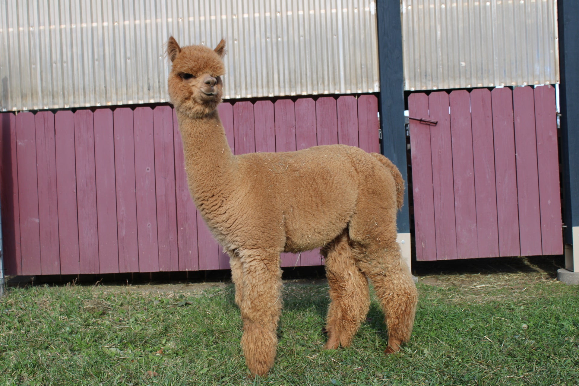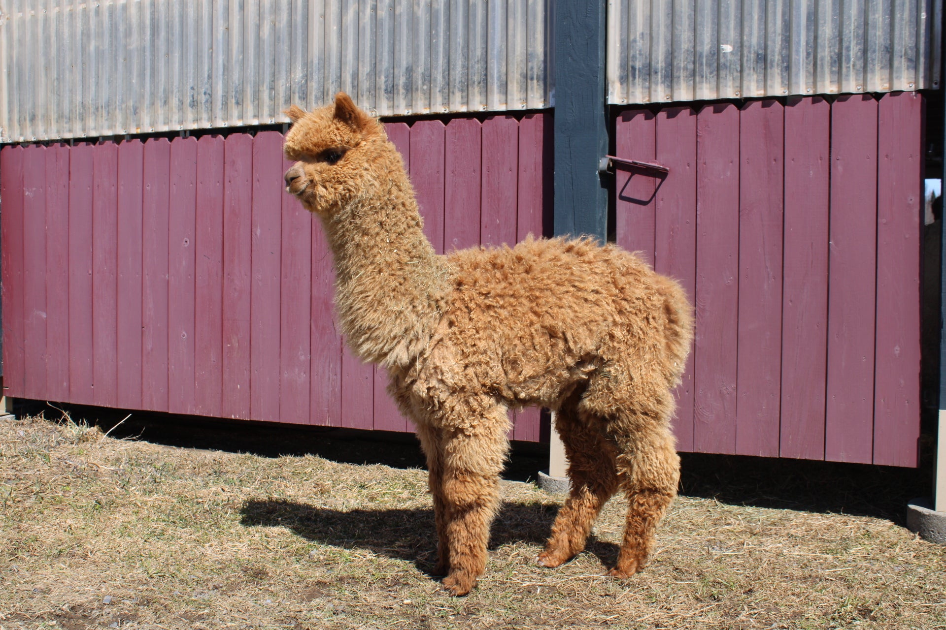 DNA's Miss Antigone, a charming young female, never fails to seek our attention! Despite her origins from some of the best bloodlines in North America, Antigone's fiber does not fully meet our strict requirements for use as a breeding stock in our program. Our increasingly rigorous selection criteria sometimes force us to make the difficult choice of letting go of animals dear to our hearts, such as Antigone.