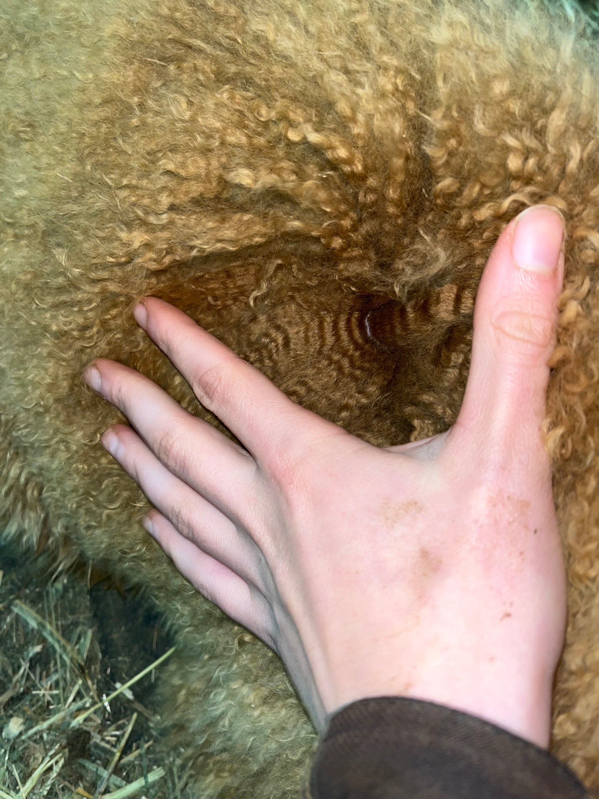 Nevertheless, Antigone's fiber presents certain remarkable qualities which deserve to be highlighted. No other alpaca in our breeding matches the length of her fleece! When he was first sheared, her fiber measured 5 inches, an incredible feat considering she was born at the end of September (7 months of growth). We predict it will reach nearly 6 inches in length in 2024. Her fleece is dense to the touch, and her fiber character is beginning to develop a higher frequency than before.