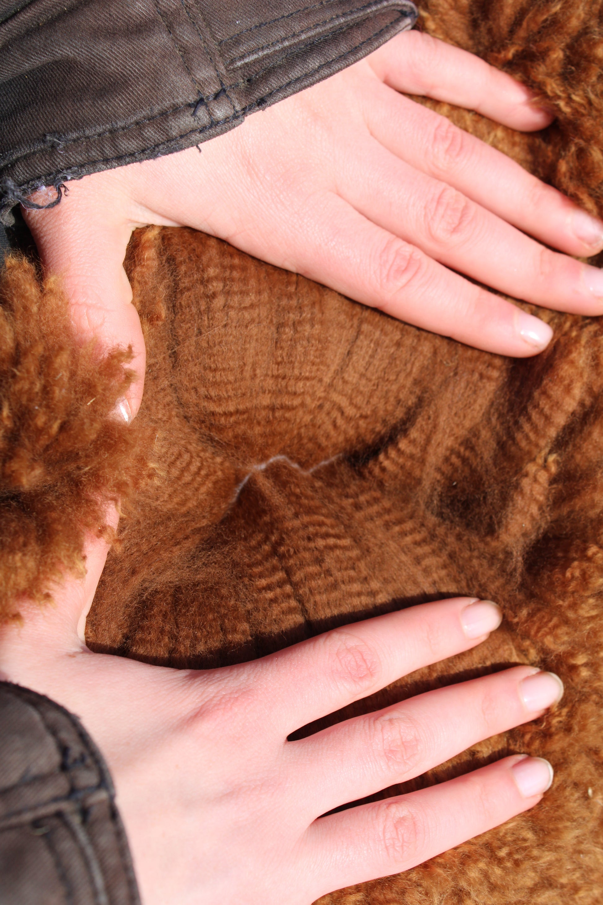His fiber is well organized and very dense. Due to the presence of large primaries in his fleece, Akeeto is not of breeding caliber.
