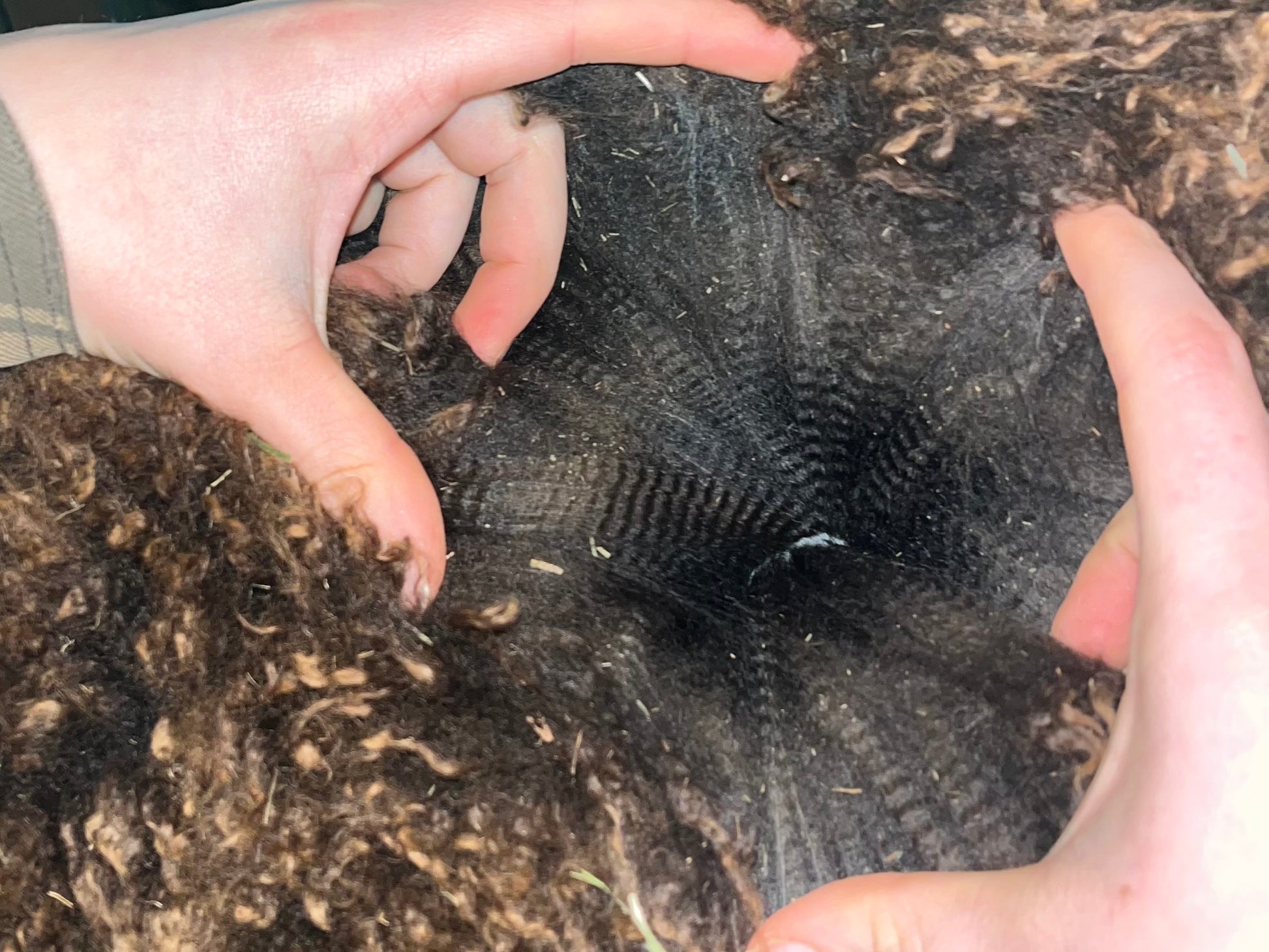 His fiber has excellent fineness and relative density. For his color, it has excellent crimp definition in his fleece, as well as good uniformity. He has excellent conformation with a very nice head. He is an excellent prospect for dark color reproduction.