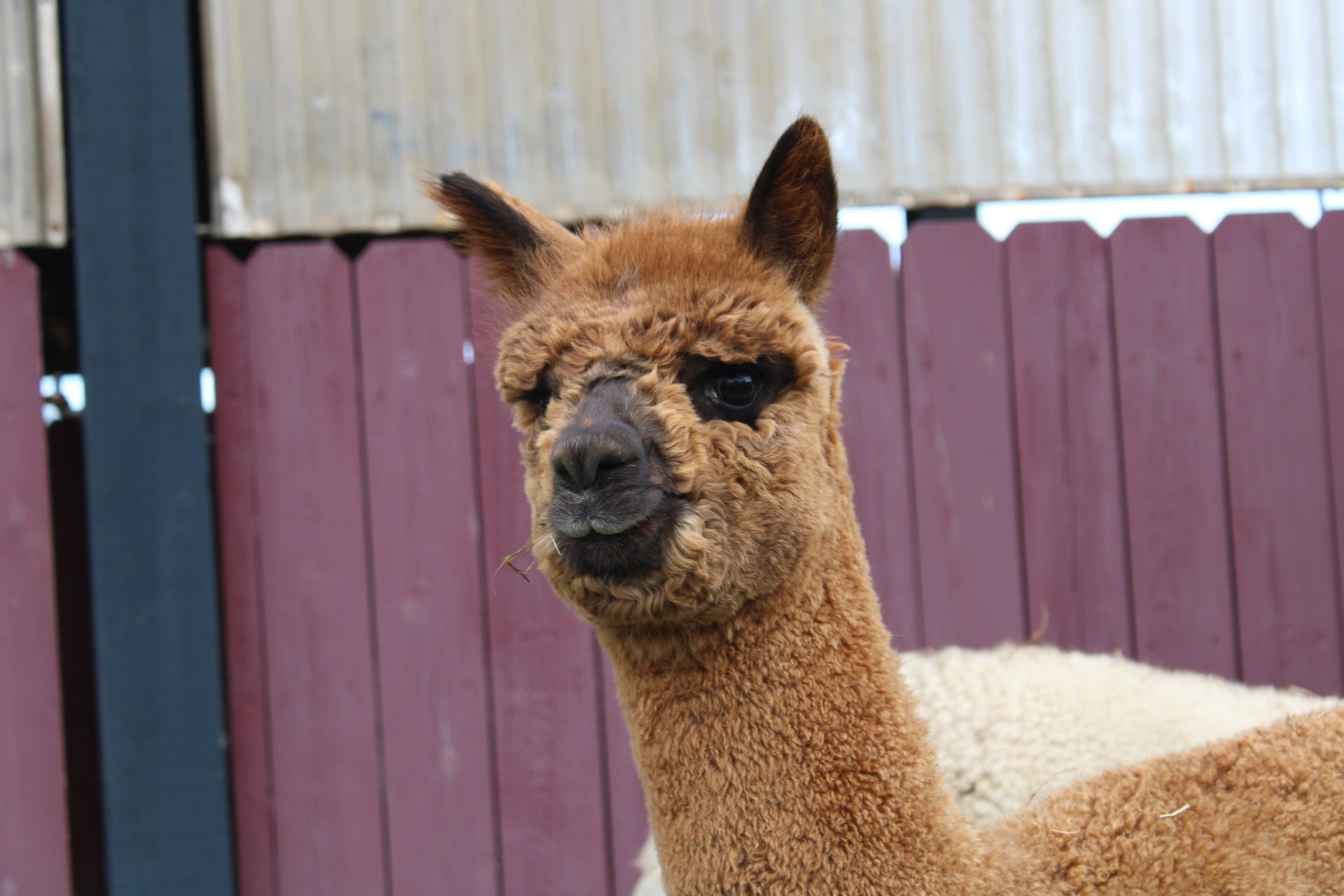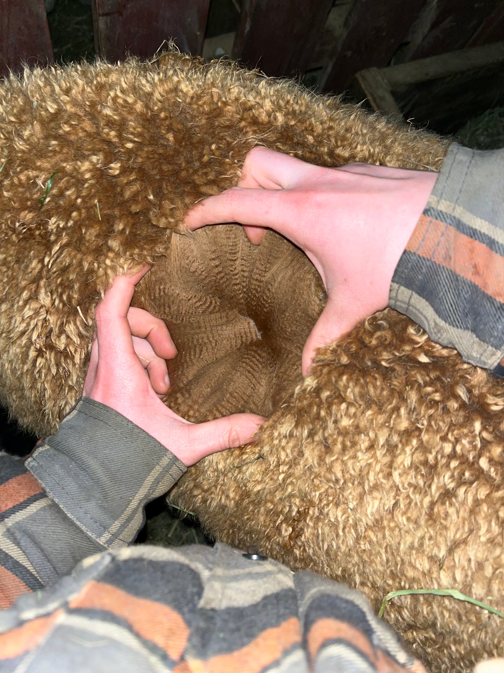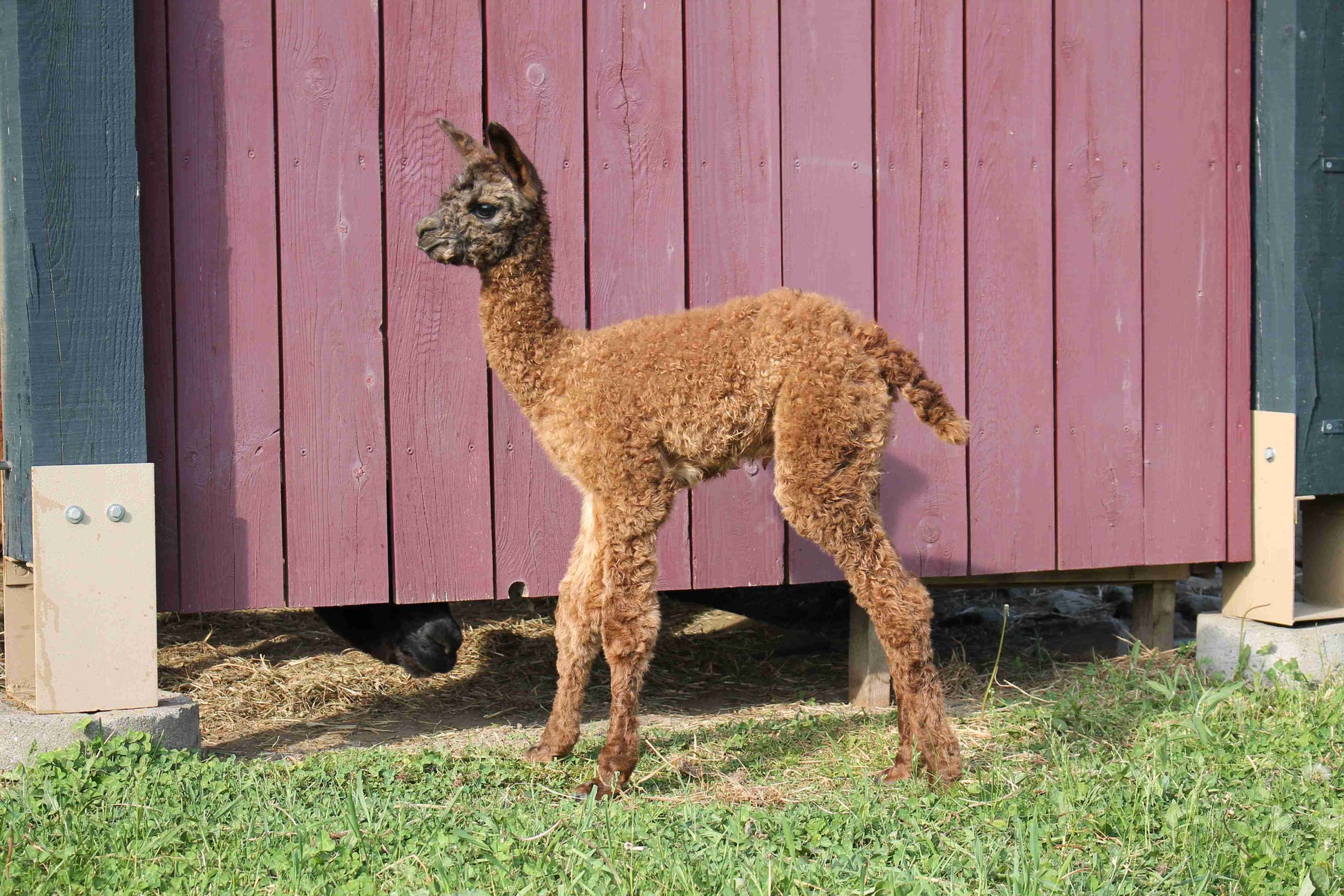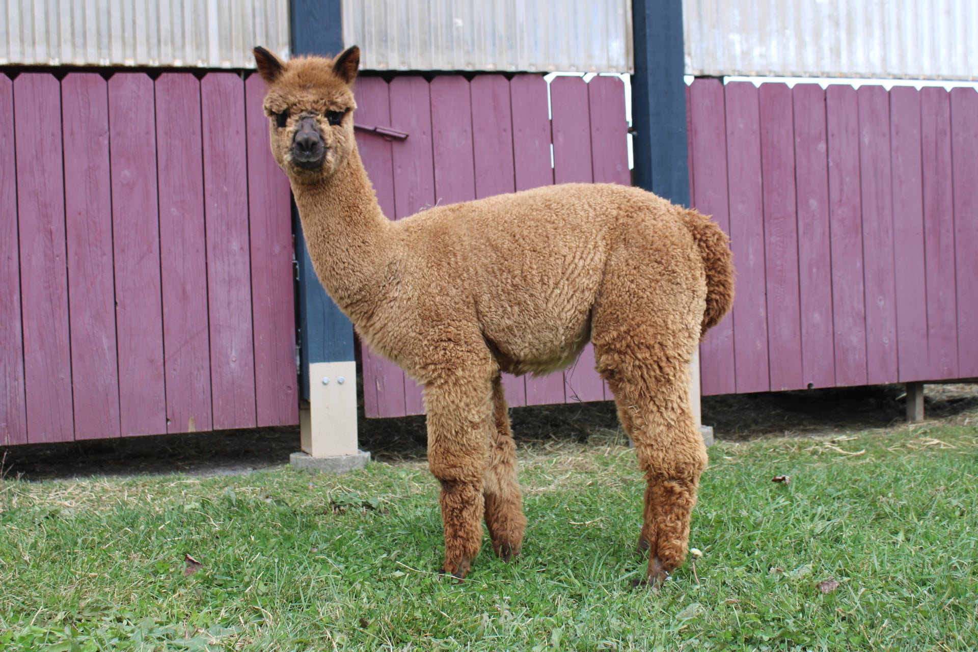 Ascot's conformation is excellent. He is solidly proportioned with excellent fiber coverage on his face. His fleece has a very aligned crimp, good density and uniformity throughout the fleece.