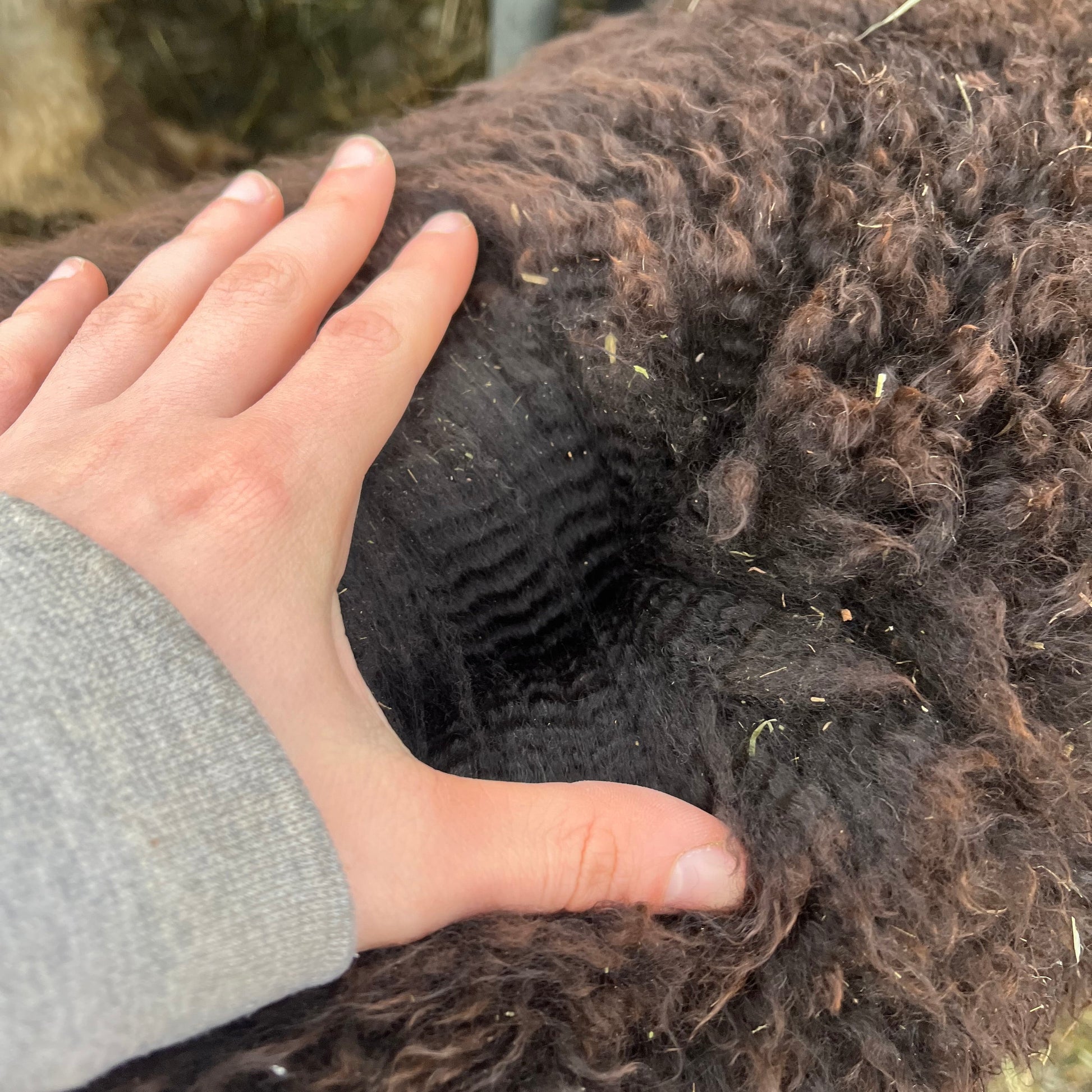 Elle présente une toison bien dense, organisée et une excellente finesse pour sa couleur. Elle a une bonne taille pour son âge et, comme ses sœurs, deviendra une grande et forte femelle.
