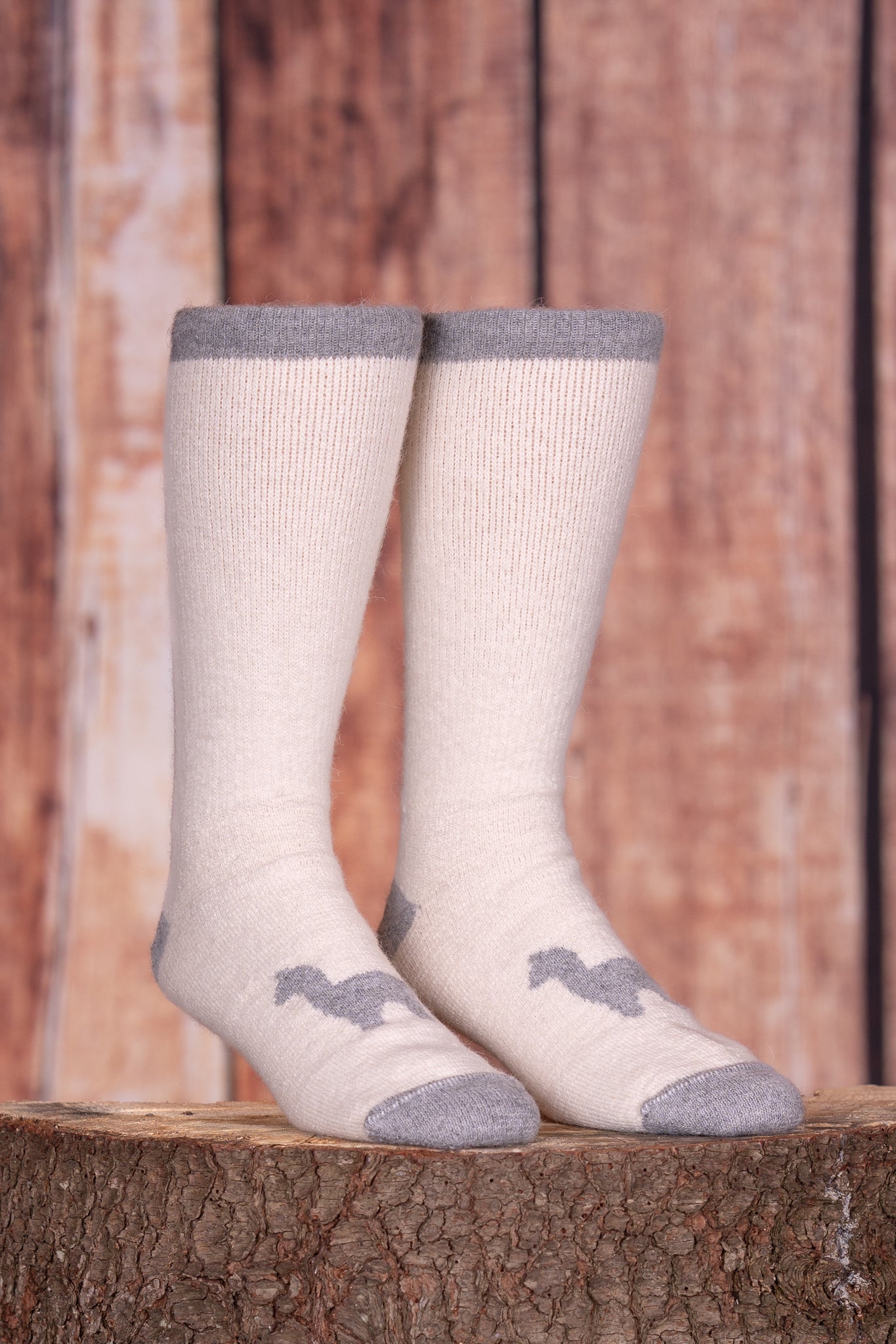Les bas en alpaga sont une solution idéale pour garder vos pieds au chaud en hiver. La fibre d'alpaga est connue pour sa capacité exceptionnelle à retenir la chaleur corporelle, dépassant ainsi tous ses concurrents. La fibre est creuse en son centre, ce qui permet de piéger l'air produit par votre corps, agissant comme l'isolant d'un mur.