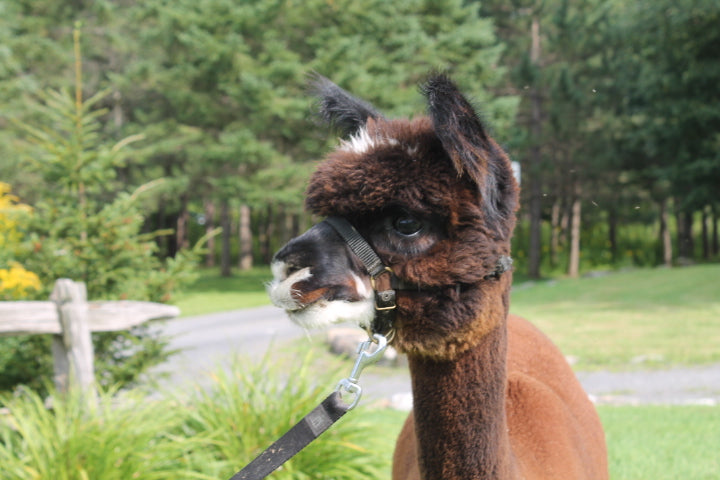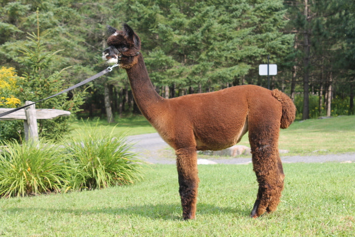 Auréo et Magnus ont produit pour nous 3 incroyables crias. Le premier est Noble Apéro Rosé du DNA, un mâle beige avec aucune faute conformationnelle, une toison de 16.3 microns, un caractère de fibre hautement défini et une excellente densité. Il n’a pas été présenté en concours à cause de la pandémie. En 2020, ils ont produit Miss Andean Shadow du DNA, une femelle noire indétrônable dans sa catégorie. Shadow est une noire élite. En 2021, une autre femelle est née de cette combinaison, Miss Andean Sunrise du DNA. Sunrise a une toison similaire à celle d’Apéro et a remporté plusieurs rubans dont 2x Championnats et 1 titre de « Best Brightness », en plus d’avoir été fortement considérer pour le « Judge’s Choice » au Navan Fair 2022.