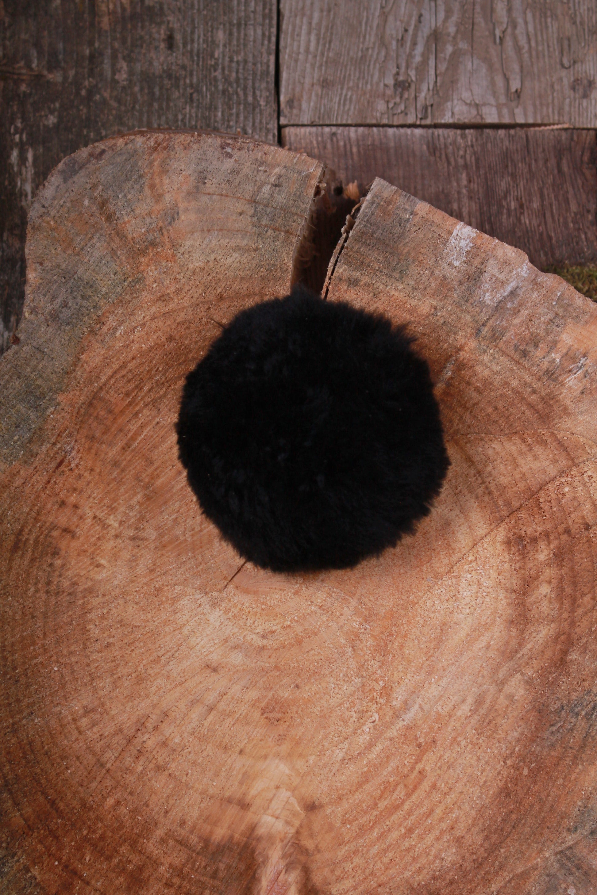 Gros pompon en fourrure d'alpaga noir