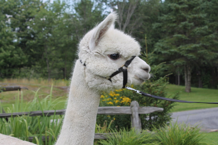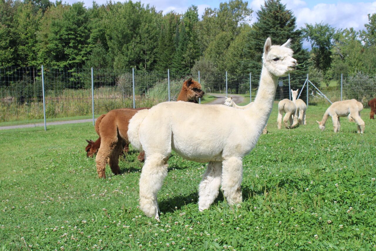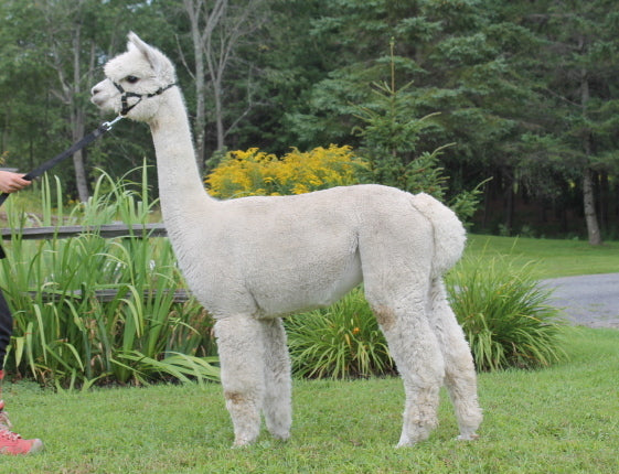La plupart de ses crias sont d’une qualité exceptionnelle! Sa carrière de reproductrice a débuté avec un mâle blanc, Sir Aucéan du DNA. La longueur de fibre de ce dernier dépassait 7’’ de longueur! Il a très bien performé en concours avec une 1ère position en concours de toison, et était à 0.5 points du titre de Champion Réserve au concours Walking Fleece d’Alpaga Québec 2019.