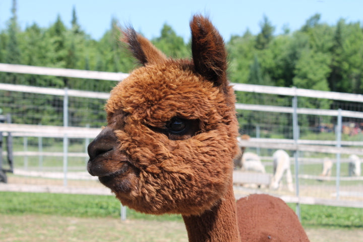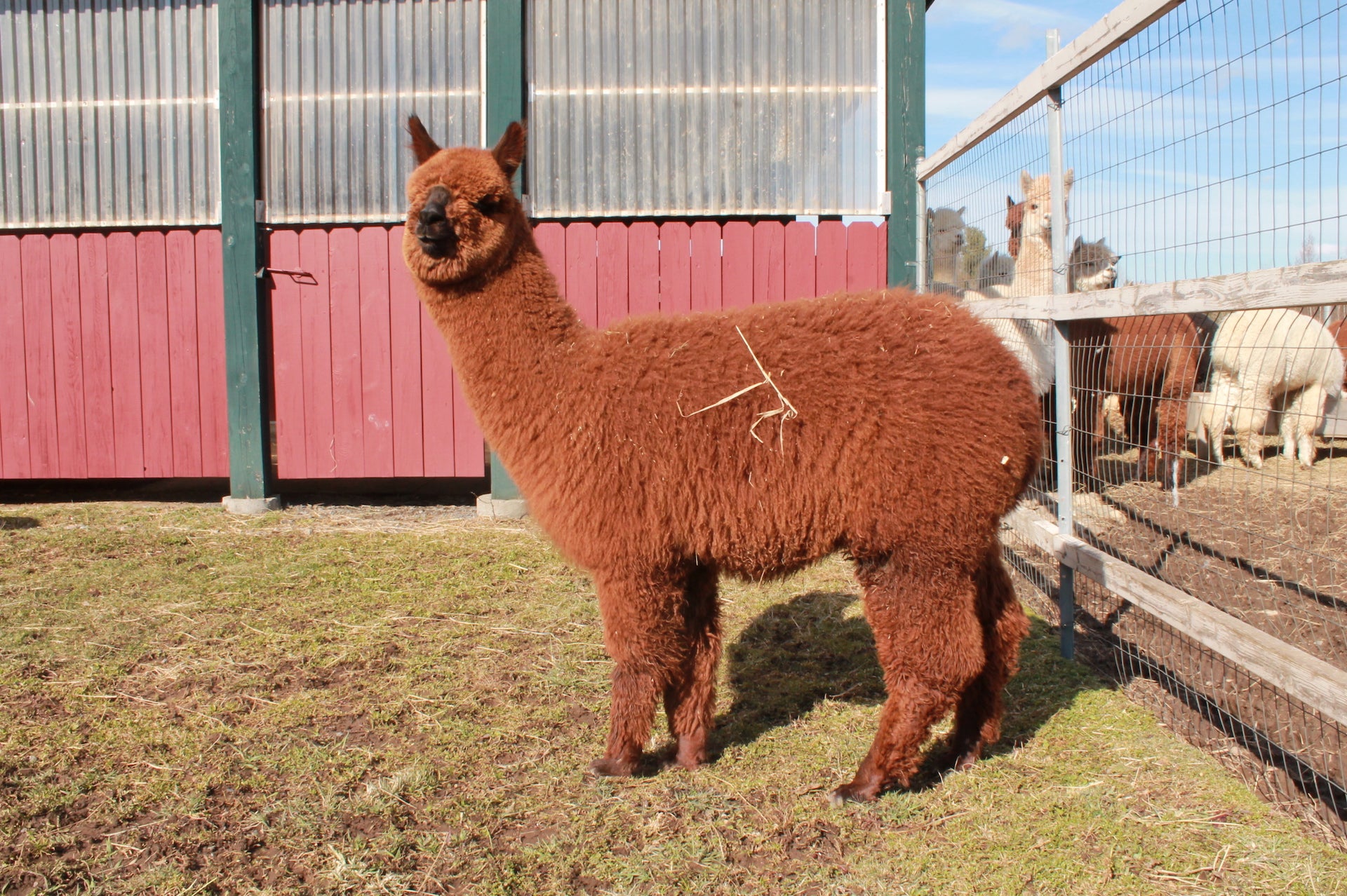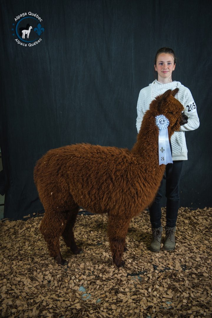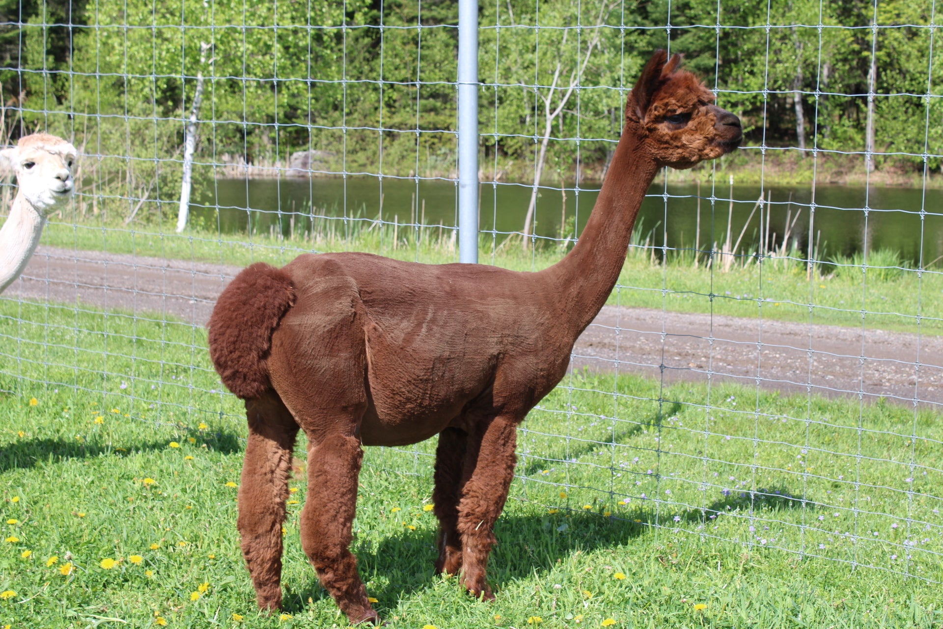 Elle transmet sa belle conformité à ses crias ainsi que la longueur de sa fibre. Sa fille Achikeny avait une fibre de 6 pouces de longueur à la tonte 2020. Ses filles, Achikeny et Aupossum, ont un bel avenir de reproductrice au DNA!