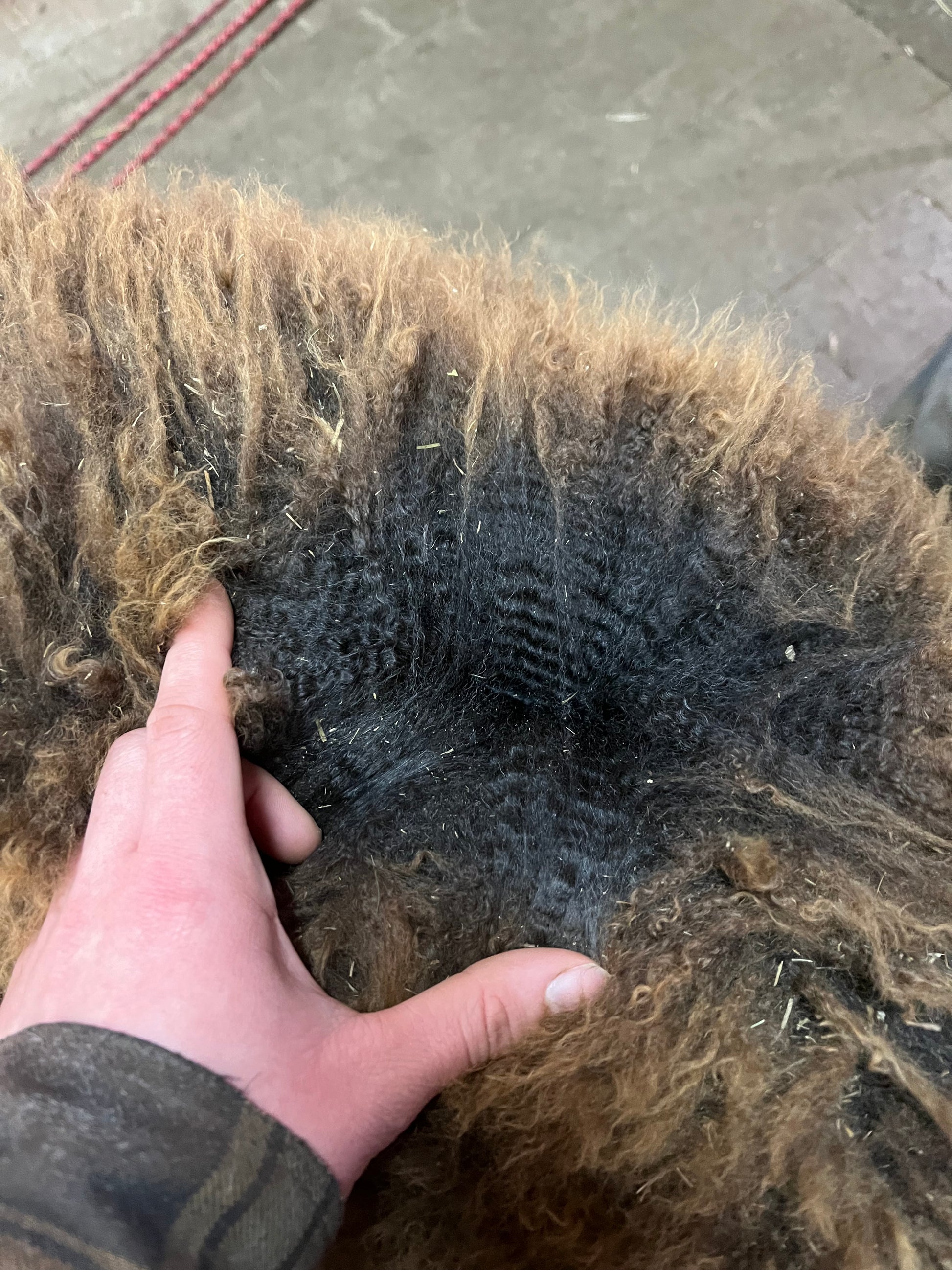 La fibre de Treasure démontre beaucoup de finesse pour sa couleur, une bonne densité, et surtout le lustre abonde! Nous avons hâte de voir comment celle-ci évoluera avec le temps puisque les toisons de sa mère, Andean Shadow, et de son demi-frère, Andean Midnight, se sont nettement améliorées avec le temps.